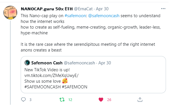 - Der erstaunliche Morgan Marshall (43K Follower) hat 4 TikToks über uns gemacht. Wir mögen sie irgendwie. Außerdem haben uns große TikTokker wie Alex Podulucky (45.000 Follower) und ** Skyz (276.000 Follower) unterstützt. Wir haben auch viele andere TikToks über Safemoon Cash gesehen.